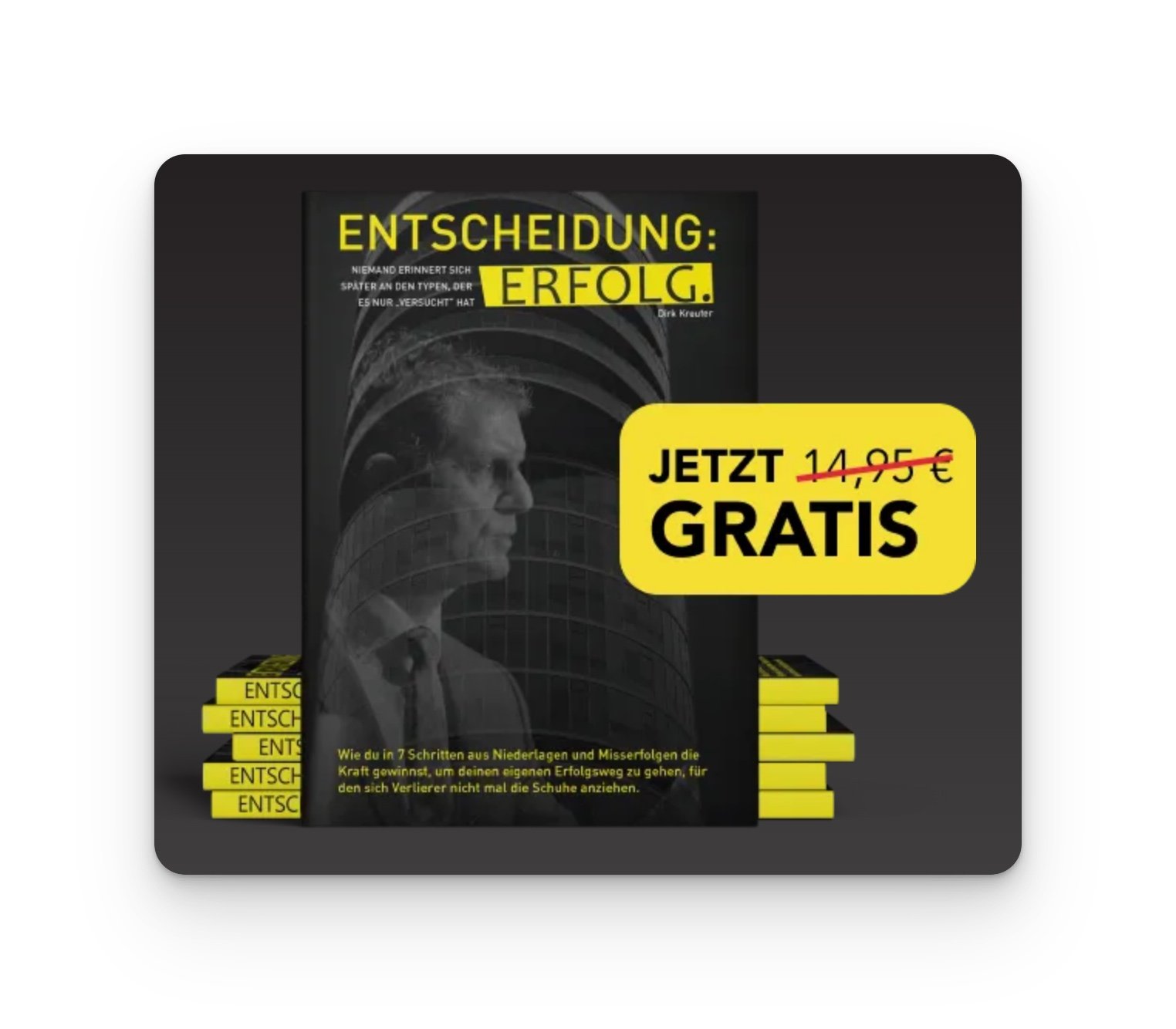 Dieses Buch schlägst du auf, um dich daran zu erinnern, dass dein Erfolg nur von einer Sache abhängt: DEINER Entscheidung. Ich bringe dich in unter 150 Seiten auf den Weg zu Resultaten. Basierend auf meinen Notizbüchern und erlebten Geschichten, kommt das Buch ohne Umwege auf den Punkt. Ehrlich. Und persönlich.